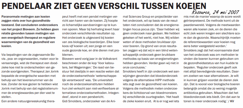 'Terwijl de universiteit noch de onderzoeksinstituten hun ziel hebben verkocht aan niet-verifieerbare alternatieve onderzoeksmethoden', zegt Breukink, niet minder streng.